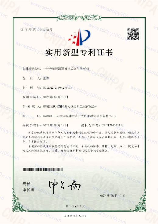 一種種植用推拉式滑到遮陽(yáng)防雨棚